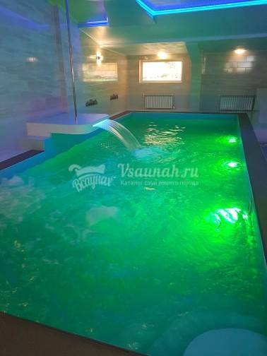 Бассейн, Размеры (Ш x Д x Г), м: 10 x 4 x 1.5, Теплый бассейн, Гидромассаж, Гейзер, Водопад, Подсветка, Аэромассаж, Каскад, Фильтрация, Трамплин,